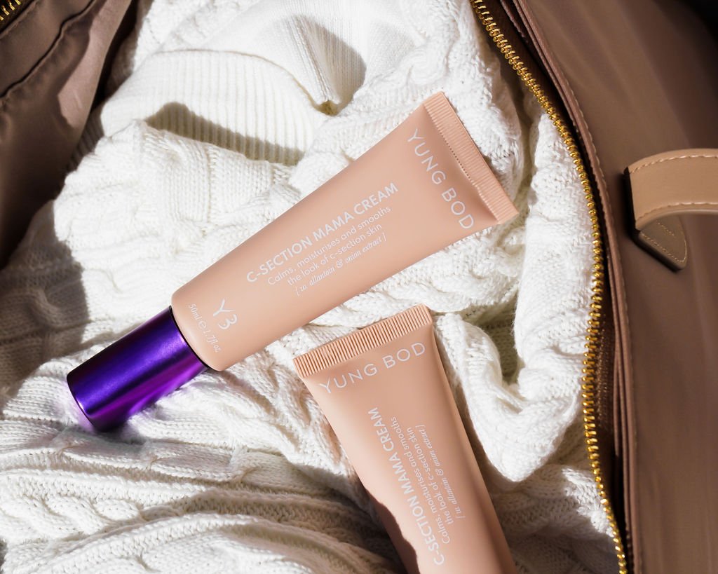 The YUNG BOD C-SECTION MAMA CREAM is a skincare product created specifically for your post-delivery skin and scar area. It contains a blend of evidence-backed ingredients to comfort your c-section skin and improve the appearance of this sensitive area.