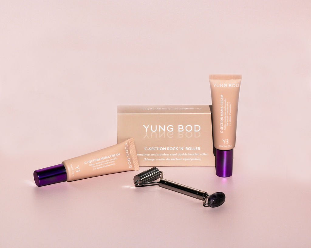 These roller heads ensure your c-section skin feels soothed and supported during the recovery process, plus they enhance skincare product absorption. Once you’ve applied YUNG BOD C-Section Mama to your skin, the roller gently presses the formula into your skin for quicker, more effective absorption.